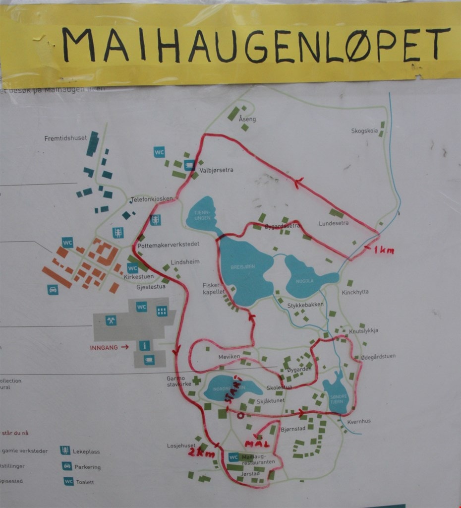 2,3km løp inne på museumsområdet. Krevende, kupert løype på gangveier.