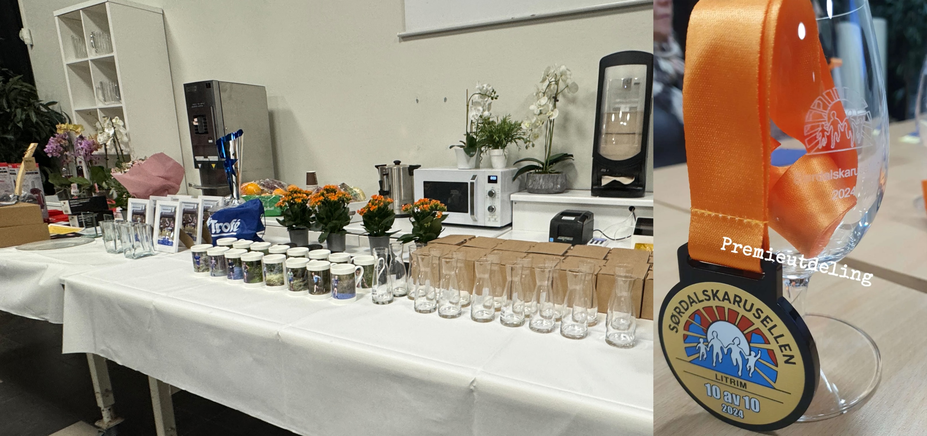 Det er deltakerpremie til alle som har fullført 6 av 10 løp i Sørdalskarusellen 2024. De som har løpt alle løpene får medalje. - Alle får lodd i forhold til hvor mange løp du har løpt.