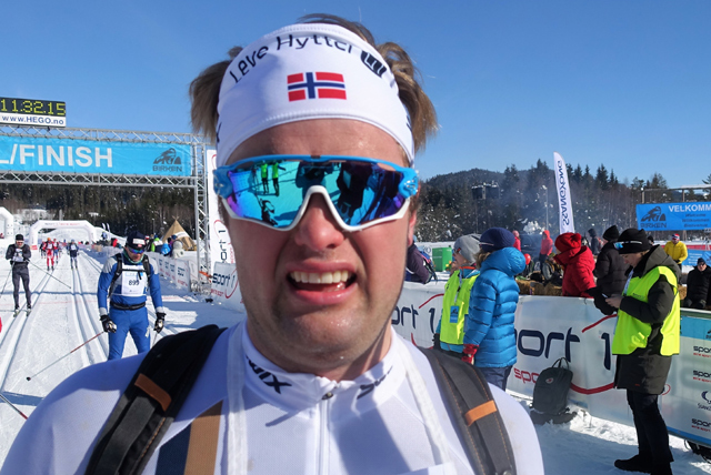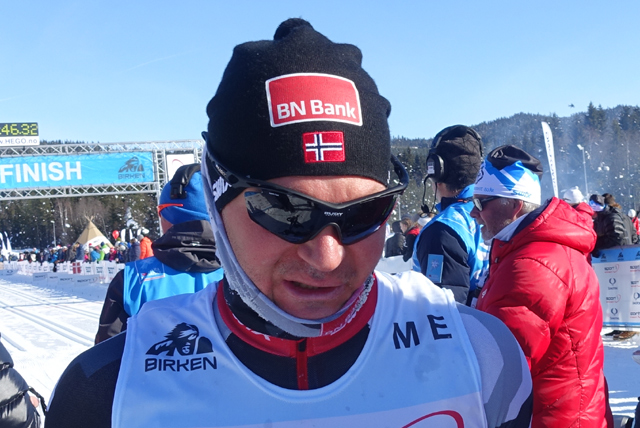 Morten Eide Pedersen nr 8 totalt - han var ikke helt fornøyd med det. Dette var hans 11. Birkebeinerrenn og hans 10. merke. Mortens ambisjoner er å bli totalvinner.