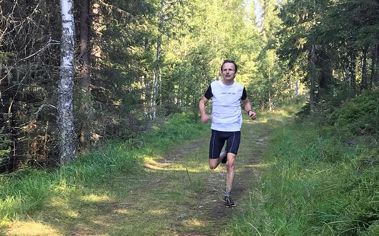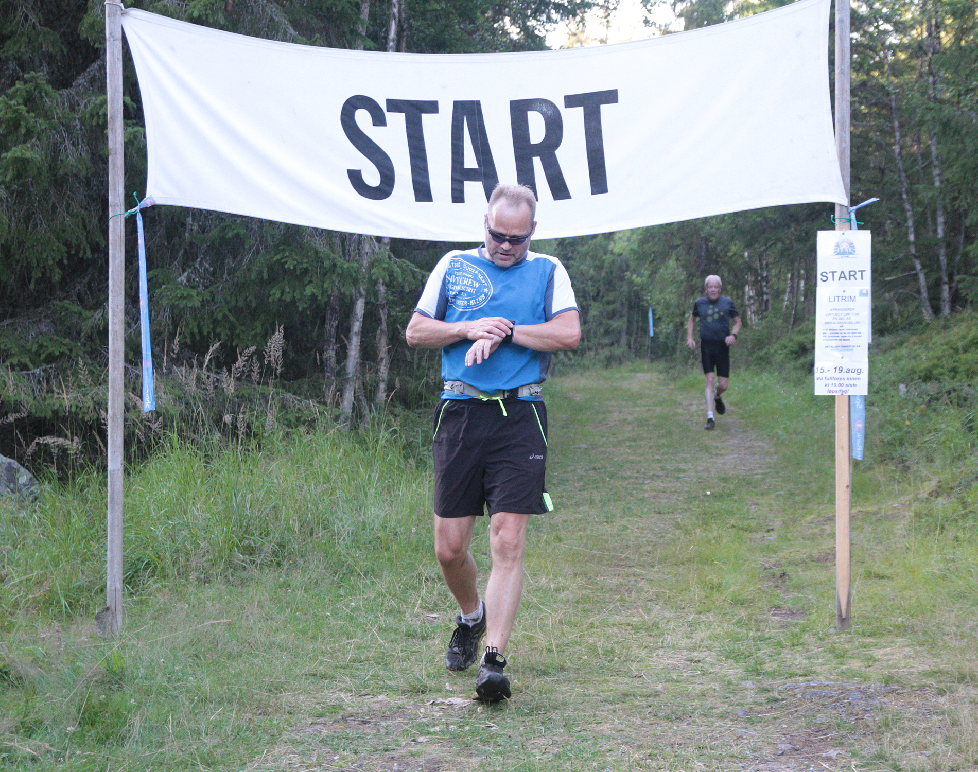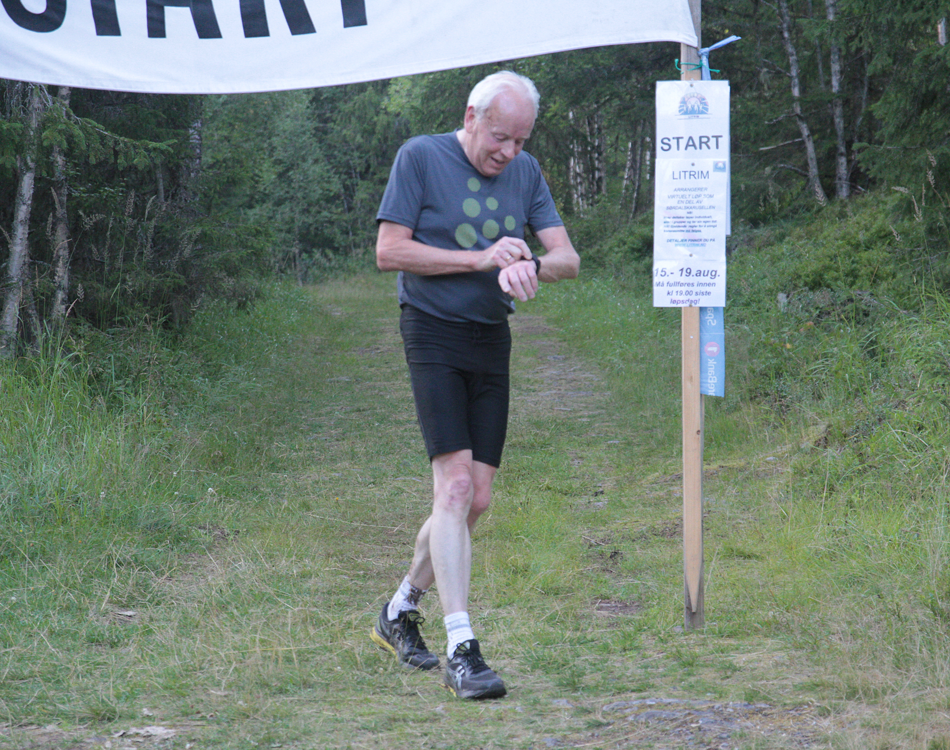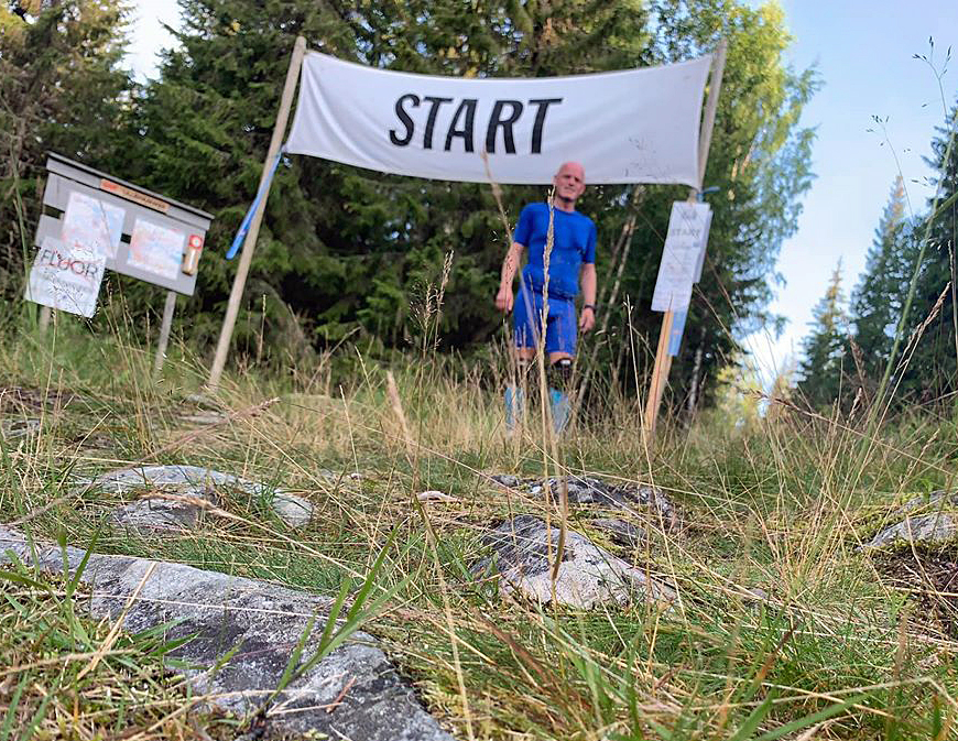 Lars Even Markrud sørger for at tiden blir riktig. Start og mål var på samme sted og her går Lars Even i mål.