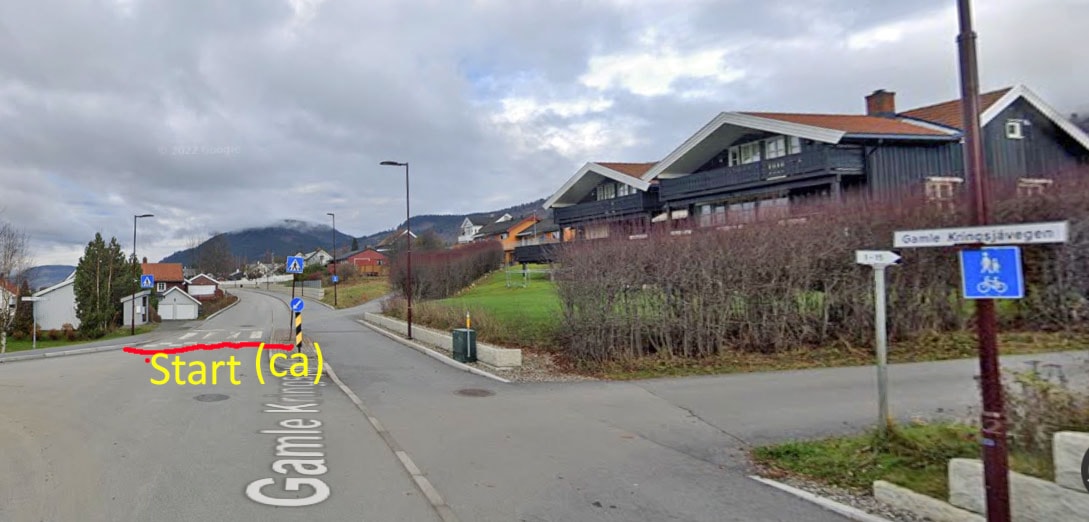 Starten går i krysset Gamle Kringsjåvei / Håkon Håkonsensveg. Løypa følger Gamle Kringsjåvei nordover mot Nordre Ål Skole, tar gangstien forbi skolen opp gjennom tunnelen til Kringsjåvegen. Følger veien nordover til veien som går av i svingen før motbakkene til Balberg, deretter gangstien ned til Ekromskogen, gjennom øvre del sydover og følger Teigveien til Nordre Ål skole og mål. Mål ved den nest siste lysmaste i stien rett fram mot busskuret.
